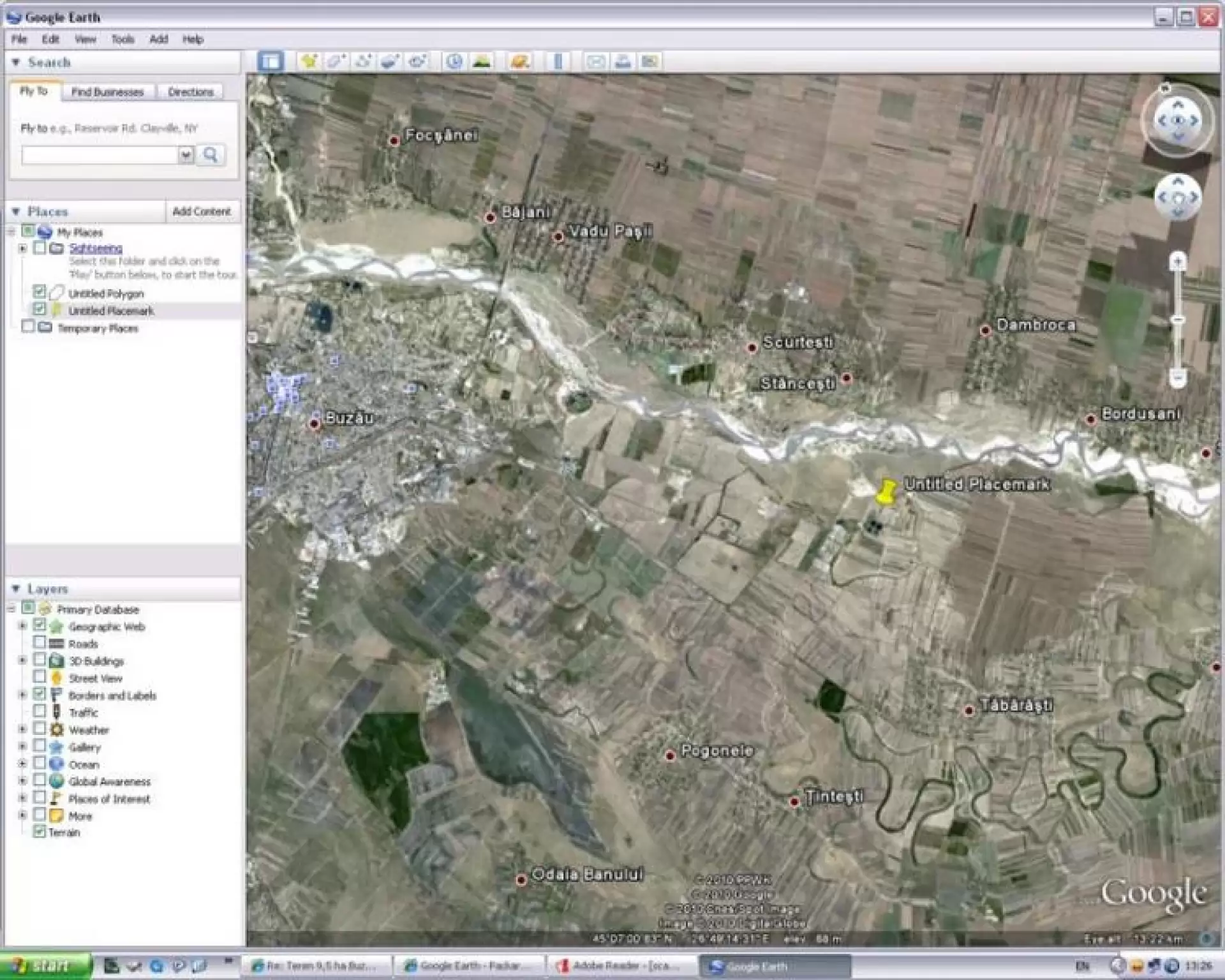 Teren 9.5 hectare pe raza orasului Buzau, la 250 m de drumul national Buzau-Braila si la 200m de raul Buzau. Teren compact pretabil balastiera: nisipul si balastul sunt la doar 1 metru (o cupa excavator) adancime. Zona industriala in dezvoltare. Terenul are acces la drum, current electric si in apropierea retelei de gaze.