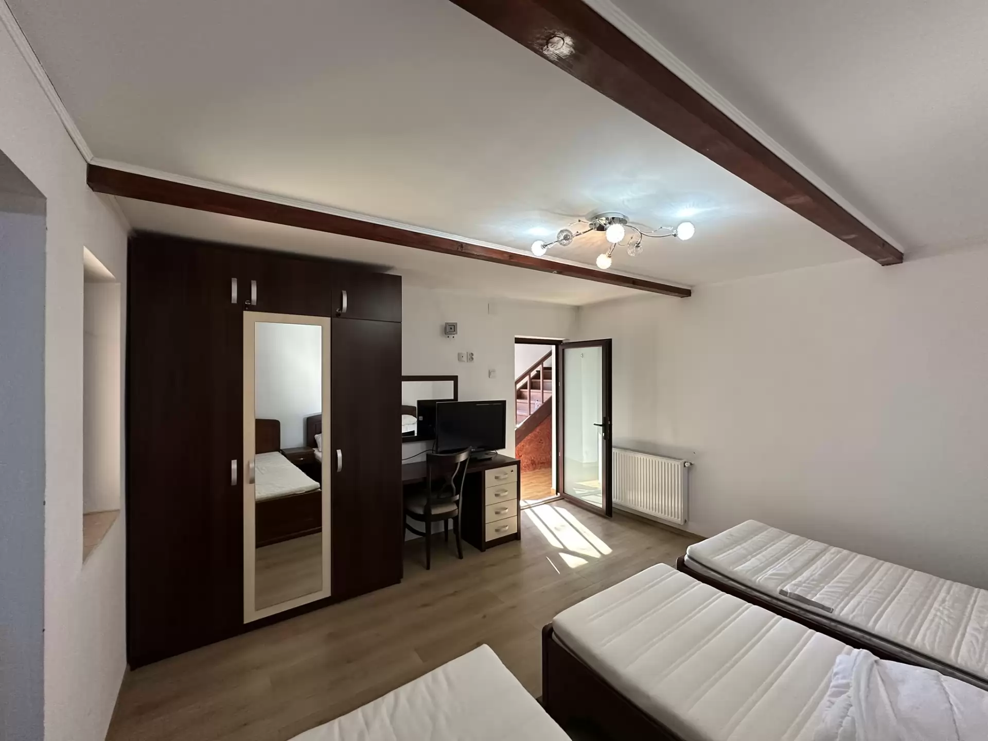 • camere luminoase, spațioase cu bai proprii, mobilate, TV