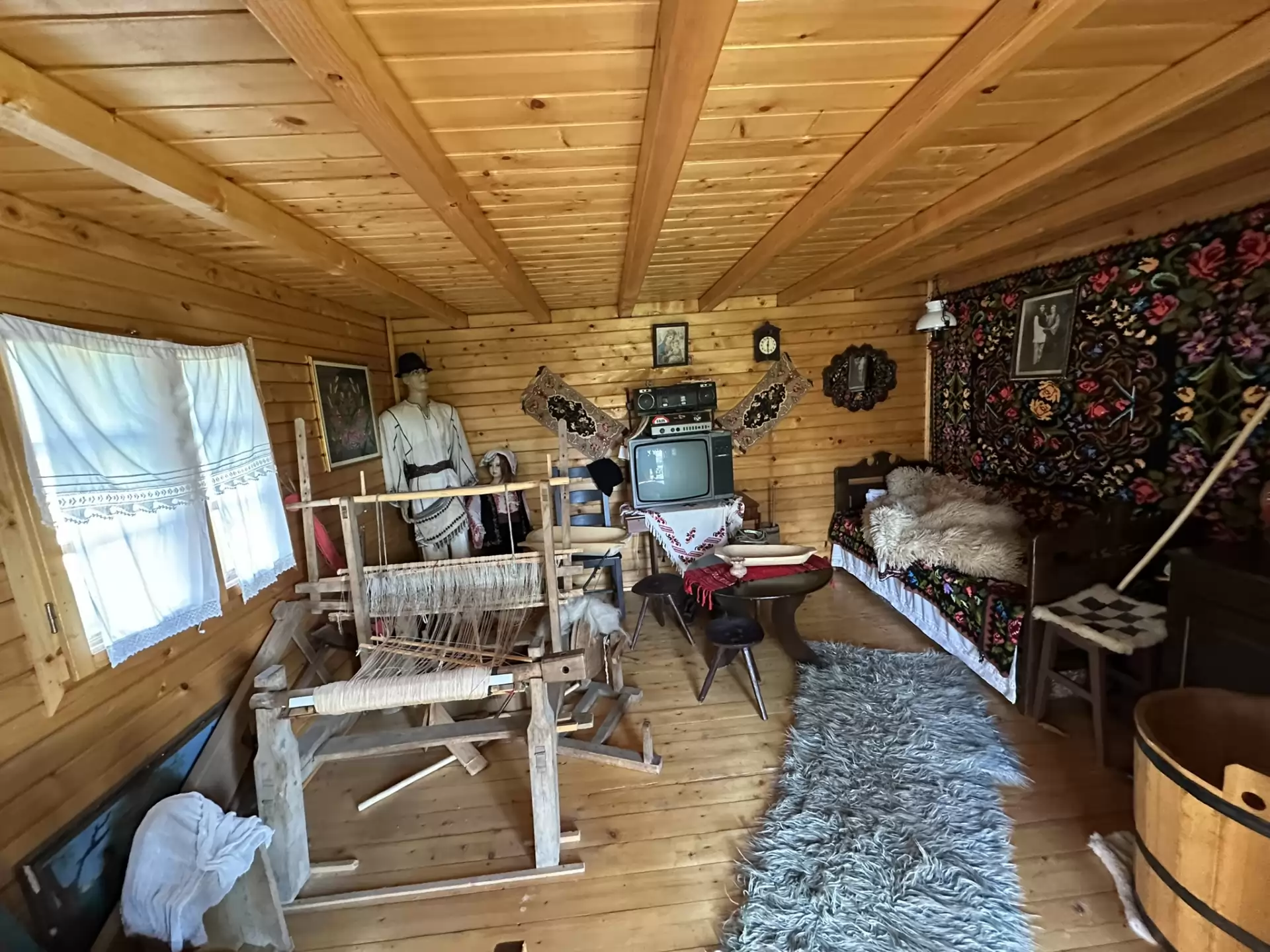 ✔ decor tradițional complet: război de țesut, costume populare, obiecte vechi