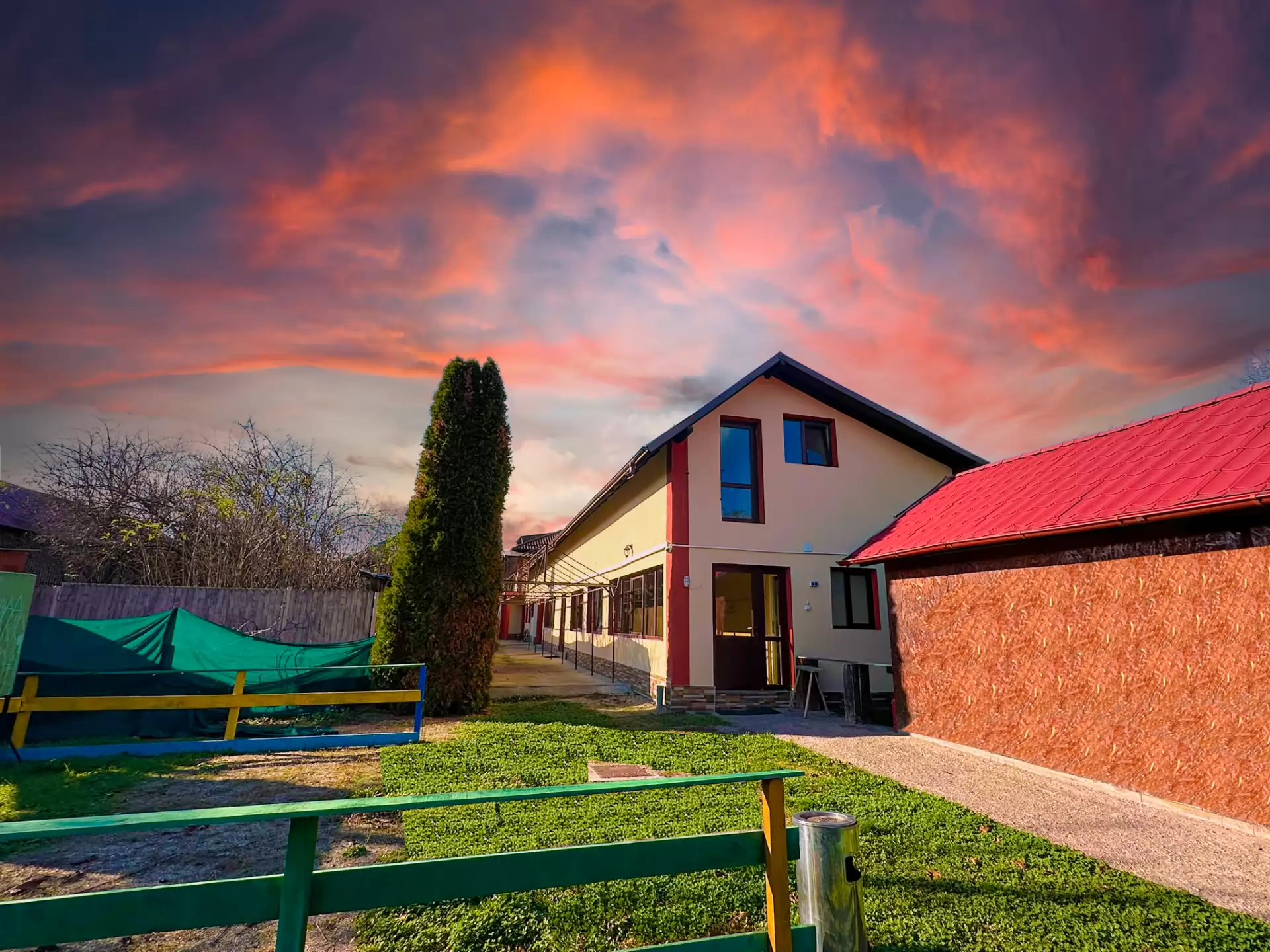 ✔ Curte generoasă amenajată pentru evenimente și activități recreative