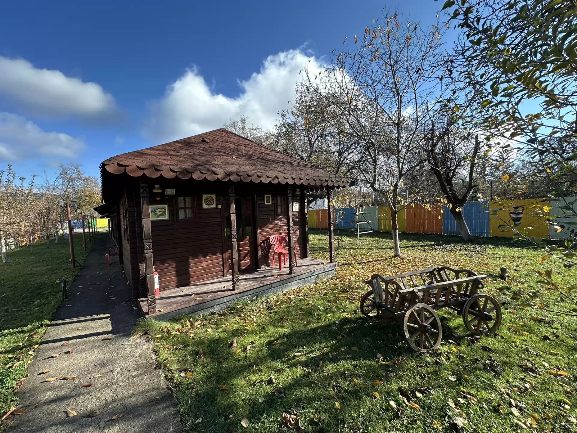 Proprietatea dispune de două foișoare spațioase, complet acoperite, amenajate special pentru organizarea de activități cu copii sau grupuri.