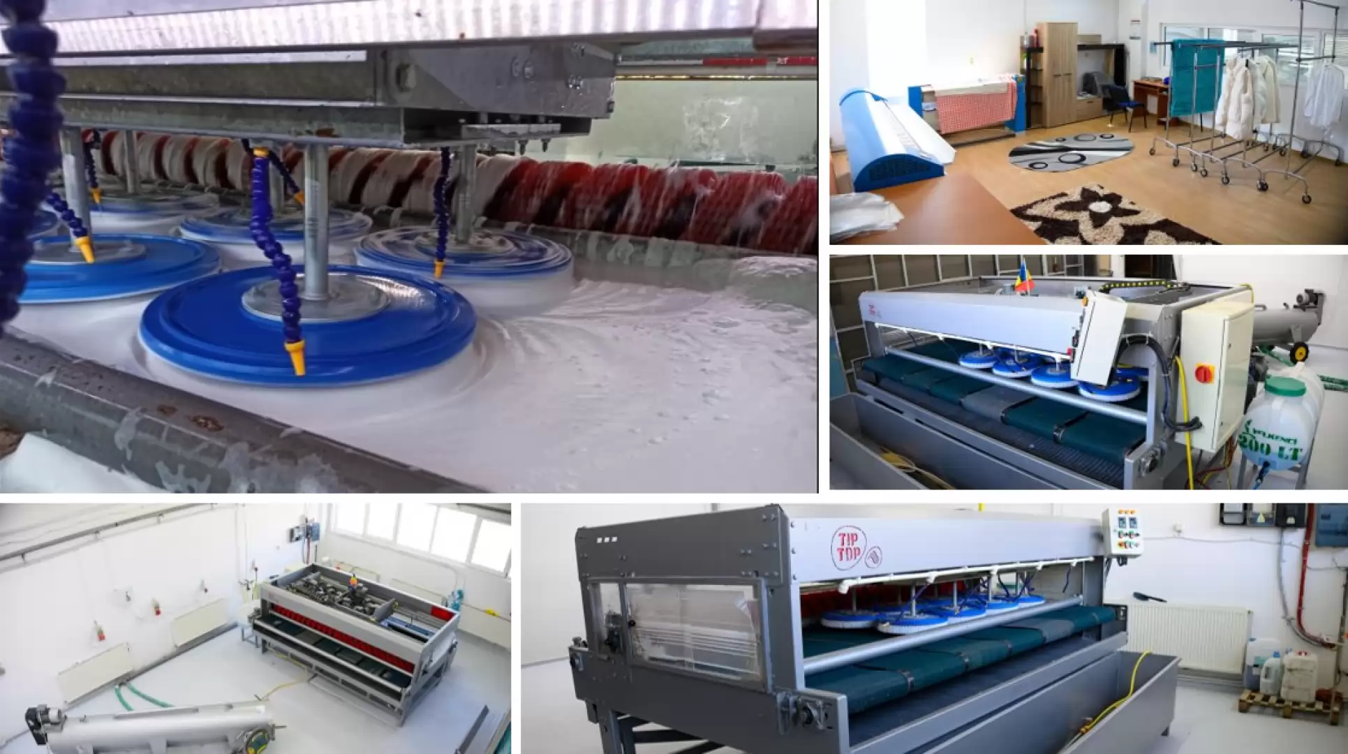 Fluxul de lucru este susținut de o mașină de spălat industrială IMESA LM 23, cu o capacitate de 23 kg, echipată cu microprocesor și sistem WET Cleaning pentru textile delicate. Aceasta permite setarea separată a temperaturii, nivelului de apă și duratei pentru fiecare program, având cuvă din inox de 216 litri și o viteză de extracție de 947 RPM (factor centrifugal 350G), ceea ce asigură o eficiență ridicată în procesul de spălare.