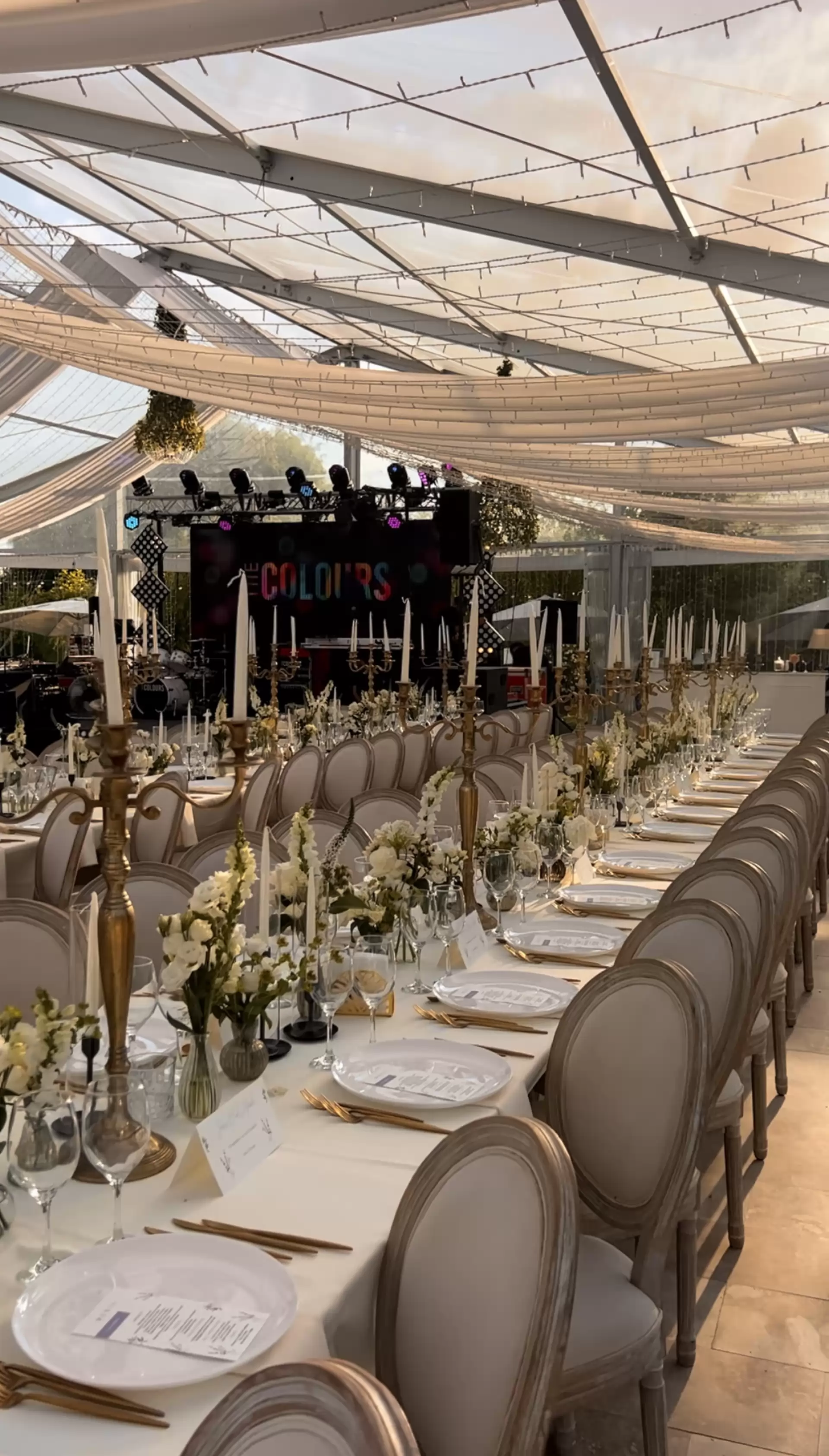 - Zona de Lounge 220mp cu 3 canapele, umbrele elegante si mese de cocktail.