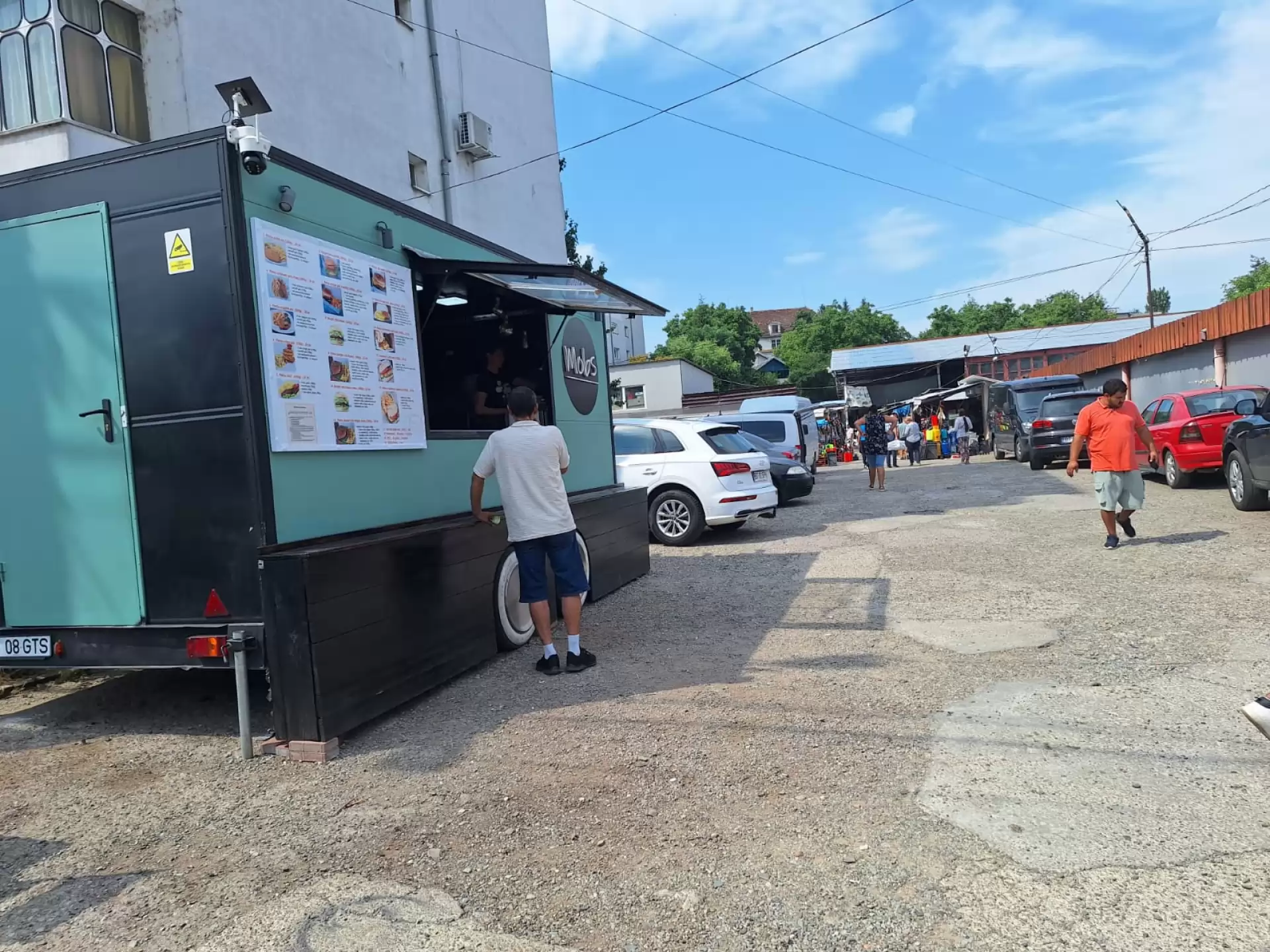 Rulota fast food echipată și utilată: frigider, congelator, plită, friteuză ,apă caldă, apă rece, vitrină caldă, vitrină rece, 3 hote, spații de depozitare etc.