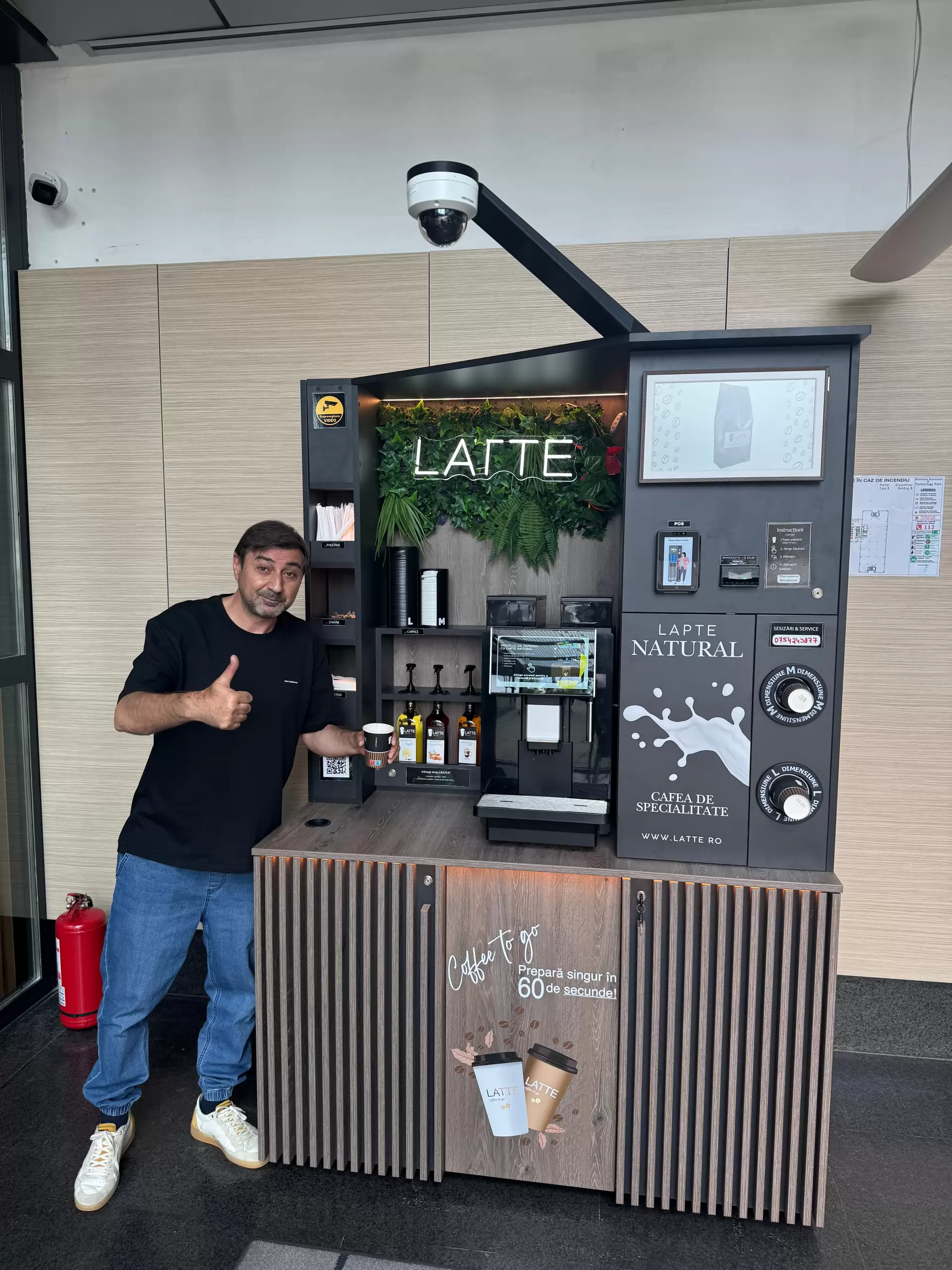 Latte Coffee To Go este un concept inovator de cafenele self-service, unic în România. Oferim cafea 100% Arabica și lapte natural, cu aparate complet automatizate și fiscalizate, instalate în locații cu trafic intens (magazine, birouri, centre comerciale) din București, Cluj-Napoca, Constanta, Târgoviște, Piatra Neamt, Sibiu, Timișoara, Râmnicu Vâlcea, Alba Iulia.